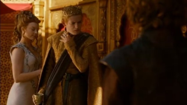 Kral Joffrey dayısı Tyrion la uğraşmaktayken Margaery pasta geldi diyerek Joffrey’in dayısıyla uğraşmasına ara vermesini sağlıyor. İşte önemli detay bu esnada sağlanıyor. Margaery habersiz bir şekilde Joffrey’in elinden şarap kadehini alıp Olenna’nın erişebileceği bir mesafeye koyuyor. İşte tam bu anda bütün dikkatler Joffrey ve Tyrion üzerindeyken Olenna zehri kadehe döküyor.